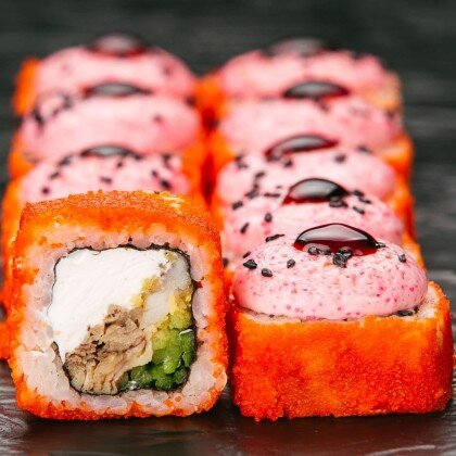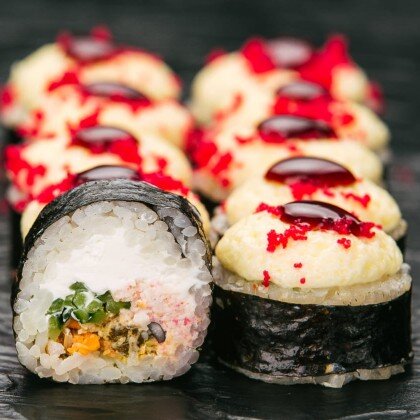 Ролл Запечённые мидии со спайси крабом (10шт)