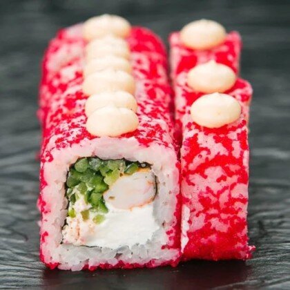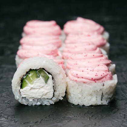 Рис, нори, сливочный сыр, снежный краб, икра масаго красная и огурец (10 шт.)