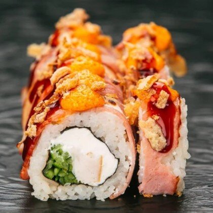 Ролл "с беконом копчёной курицей и соусом спайси"